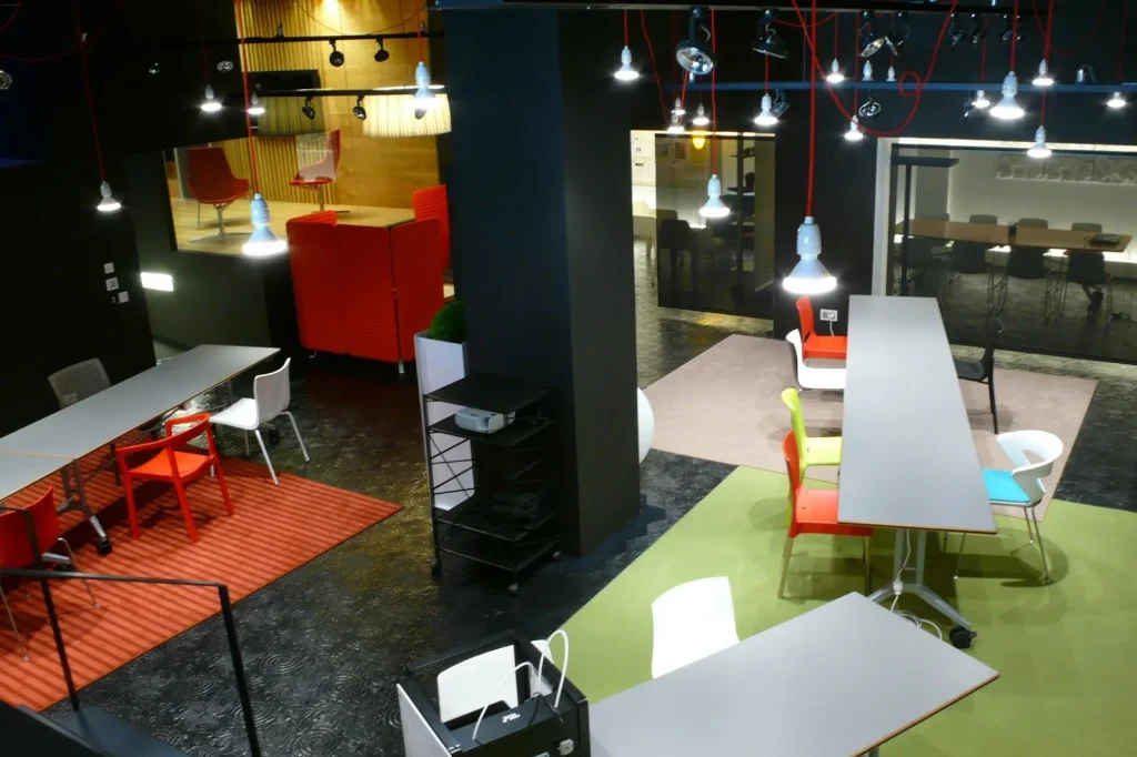 El espacio cuenta con opciones variadas para adaptarse a las necesidades de sus miembros. Ofrece puestos de trabajo individuales en áreas compartidas, oficinas privadas para quienes necesitan mayor privacidad, y salas de reuniones equipadas con pantallas Smart TV o proyectores, perfectas para presentaciones, formaciones o encuentros profesionales. Además, dispone de una zona club donde los miembros pueden relajarse y disfrutar de café de cortesía en un ambiente más distendido.
